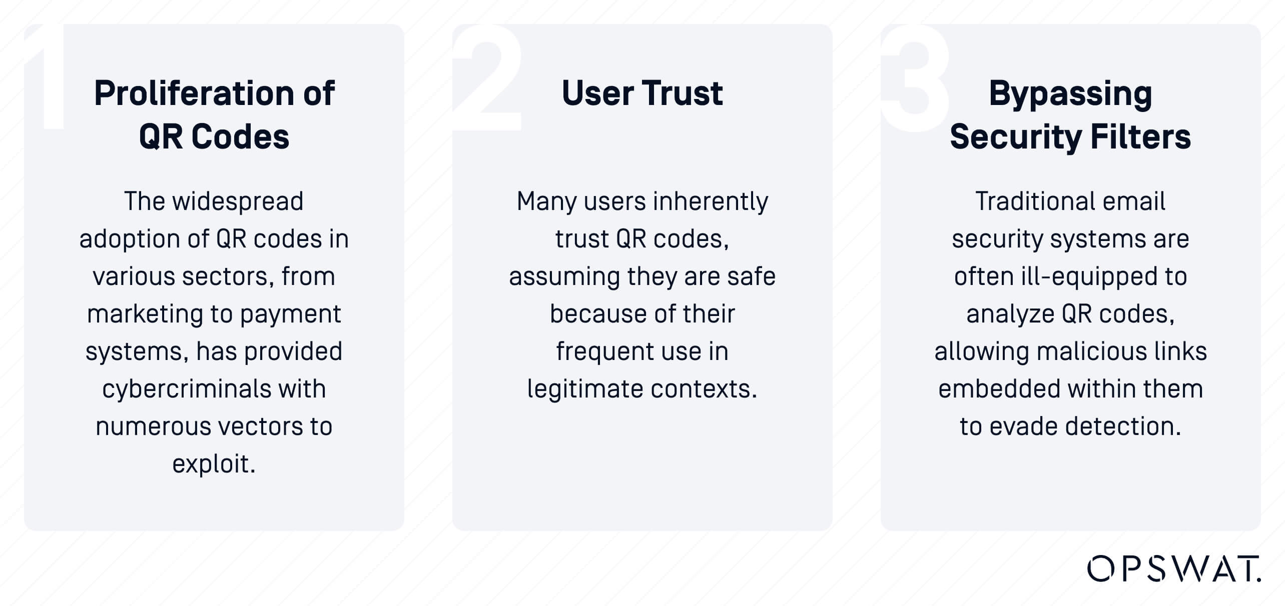فيما يلي أهم ثلاثة عوامل تساهم في ظهور التصيد الاحتيالي لرمز الاستجابة السريعة: