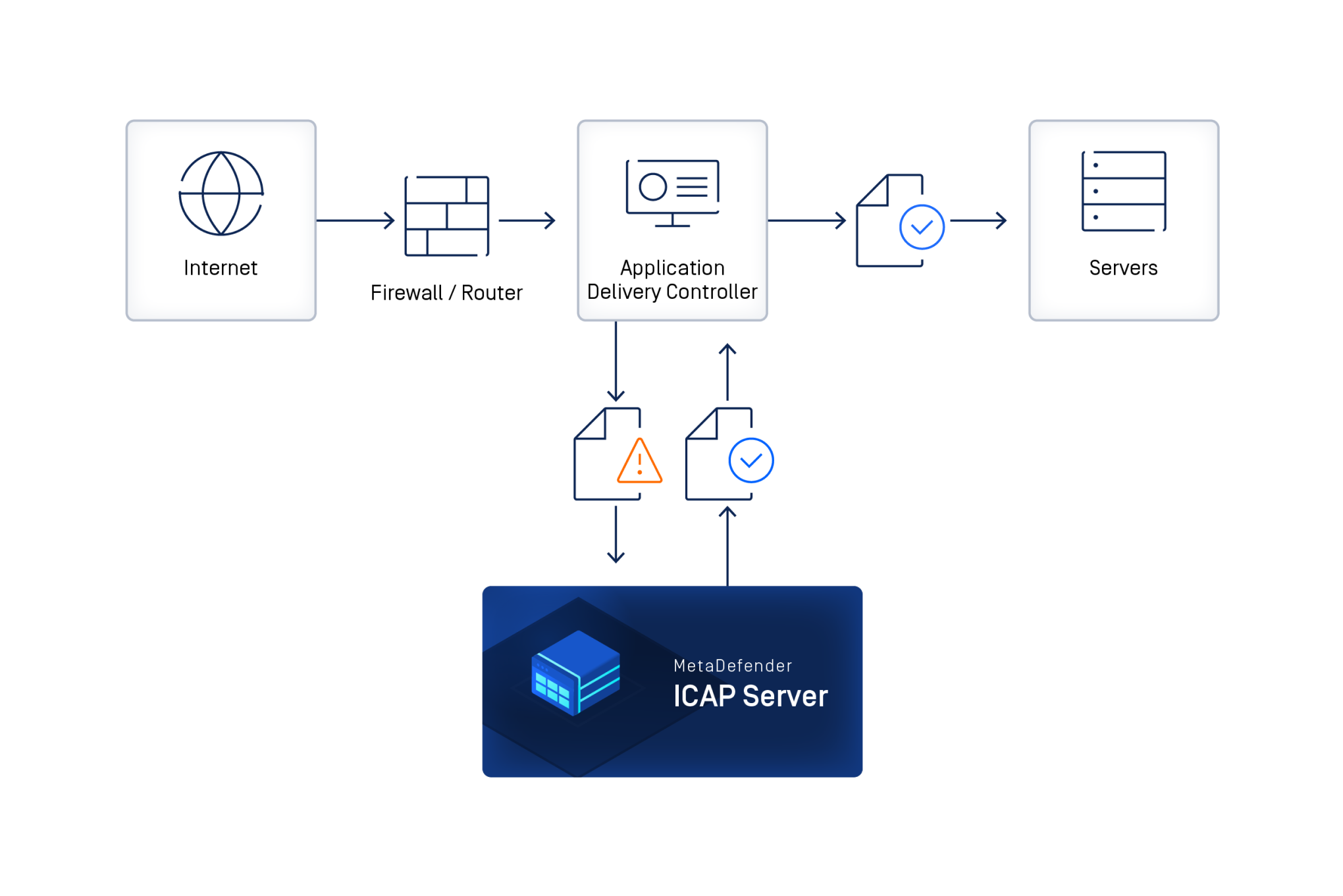 يمكن دمجServer MetaDefender ICAP Server مع وحدات التحكم في تسليم التطبيقات (ADCs) لتوفير حماية فائقة ضد التهديدات الإلكترونية المعروفة وغير المعروفة. من خلال ICAP الخاص به، يحمي MetaDefender جميع الملفات التي يتم تحميلها من خلال ADC.