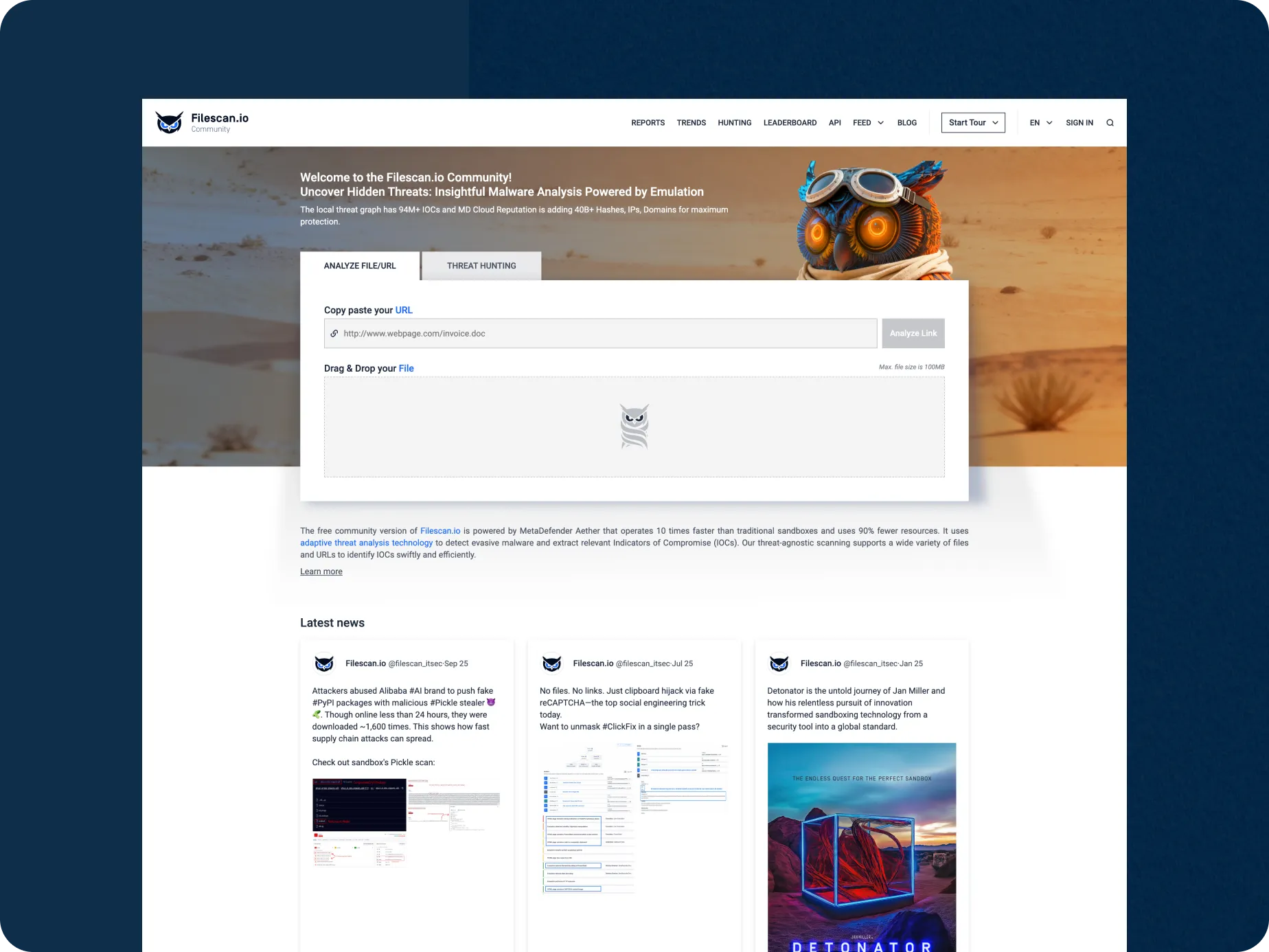 Access deeper analysis, investigate suspicious files, and explore multi-layer malware detection through the FileScan community.