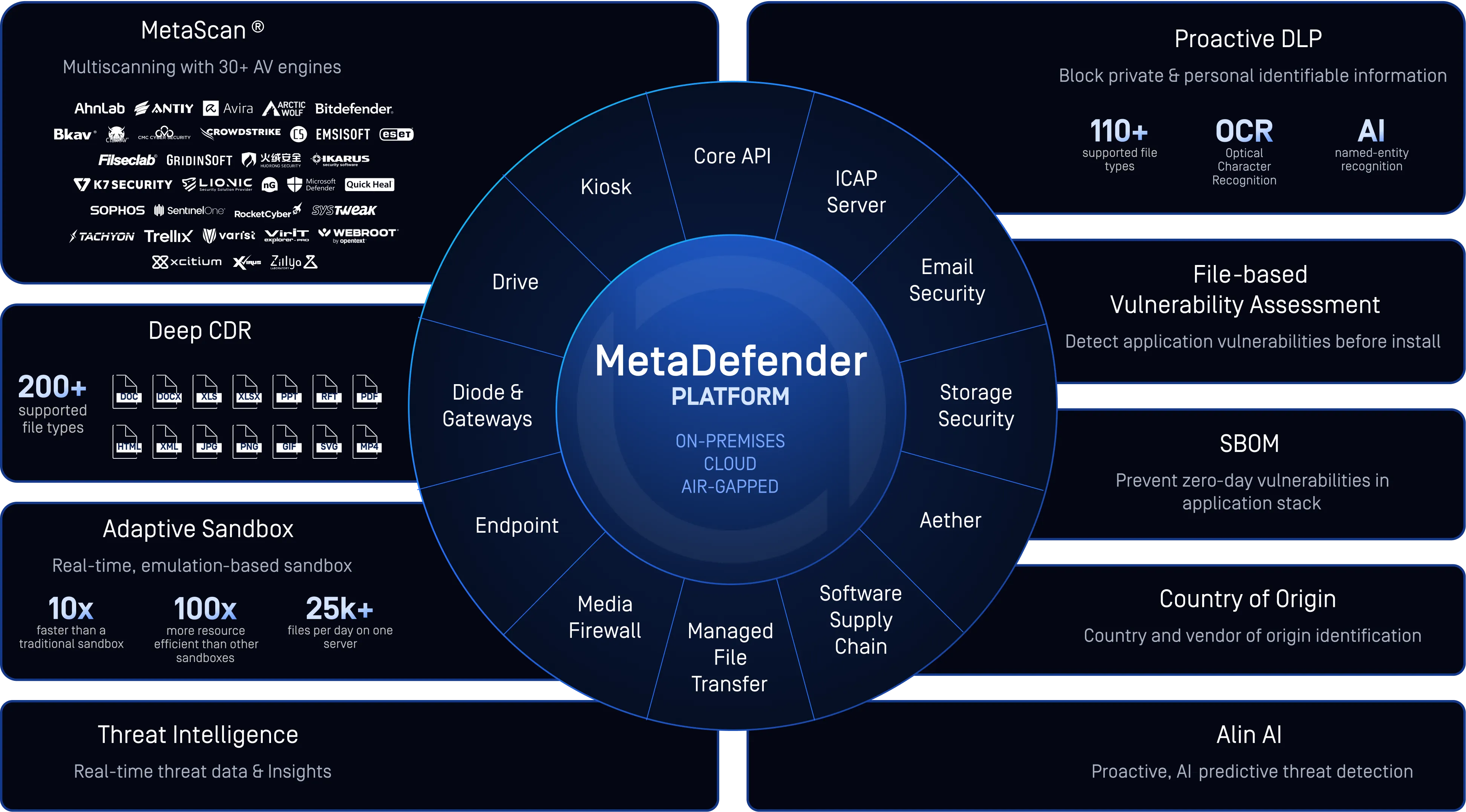 يقوم مركز OPSWAT بتطوير وإدارة التقنيات الأمنية الأساسية التي تدعم كل منتج ومنصة. بدءًا من الكشف عن البرامج الضارة باستخدام محركات متعددة وتطهير الملفات وصولاً إلى تحليل التهديدات السلوكية والكشف التنبئي قبل التنفيذ، فإن هذا هو المكان الذي يتم فيه تصميم الحماية القائمة على مبدأ "الوقاية أولاً" والتحقق من فعاليتها وتطويرها باستمرار.